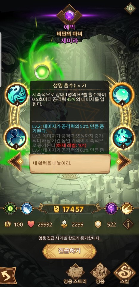 말그대로 적 생명력을 흡수해서 본인은 강해지고