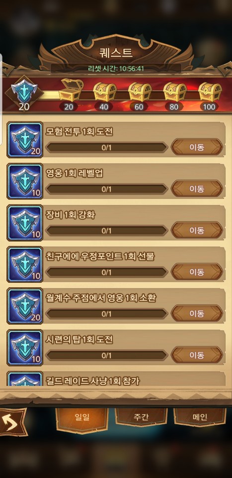 AFK아레나 일일퀘스트입니다