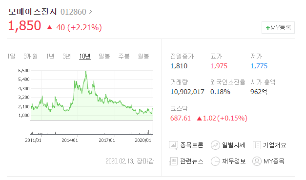 모베이스전자 주가