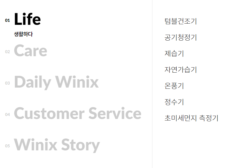 위닉스는 텀블건조기, 공기청정기, 제습기, 자연가습기, 온풍기, 정수기, 초미세먼지 측정기