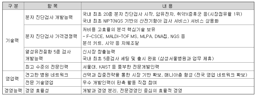 랩지노믹스는 분자진단검사 개발능력에서 국내 최고 수준이며