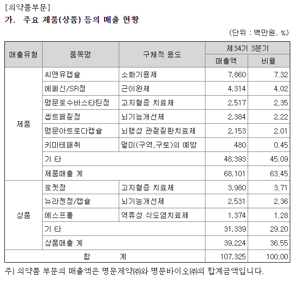 명문제약 의약품부문에서 명문제약으로