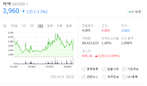 빅텍은 방산업체들 중에서도 시장의 주목을 가장 많이 받는 기업입니다. 그렇기에 방위산업과 관련된 북한의 도발, 미사일 발사, 중동지역의 교전 등의 이슈가 있을 경우 주가에 좋은 흐름을 보이곤 합니다.