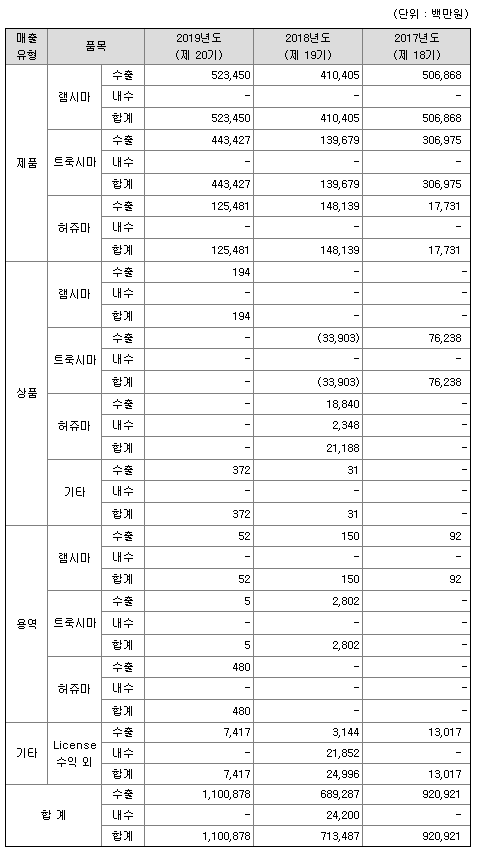 주로 판매채널을 통해 판매를 하고 있으며, 장기적으로 사업 성장력과 확장력이 충분하다고 보이는 지역에는 직접판매망을 구축하기도 하는 적극성을 보여주고 있습니다.