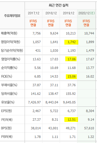 솔브레인의 주요재무상태를 보면 영업이익이 상당히 높음을 볼 수 있습니다. 부채비율도 거의 최저에 가깝고 안정적으로 수익을 내는만큼 현상태도 최상의 컨디션임을 볼 수 있습니다.