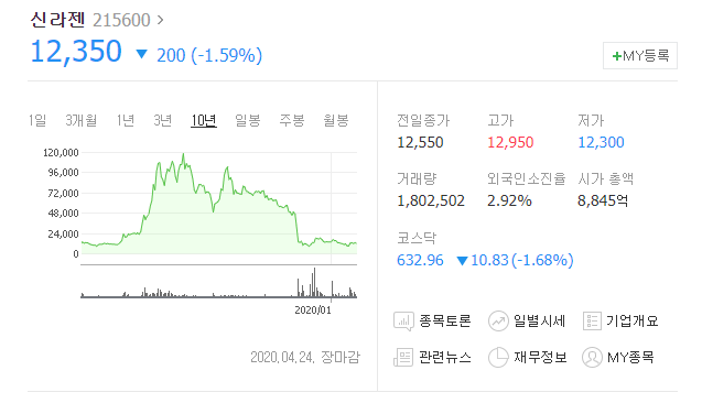 신라젠은 주가조작, 임상실패 등으로 주가가 바닥을 친 뒤, 계속해서 좋지 않은 소식들이 들려오는만큼 나쁜 이미지가 많이 박혀있는 기업입니다. 대표 구속 등 실제 연구와 관련없는 악재들이 많기에 사람들이 하나둘씩 떠나가기도 합니다.