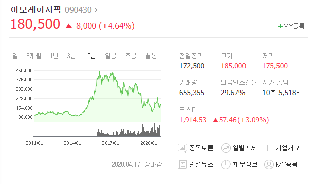 그렇기에 오늘은 화장품 대장주 아모레퍼시픽에 대해 알아보겠습니다.
