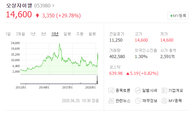 진단키트를 꼭 생산해야 진단키트 관련주가 되는것만은 아닙니다. 관련기업이 진단키트를 생산하고, 진단키트가 증시에 영향력이 큰 시점에서는 해당 기업과의 연관성만으로도 관련주가 되곤 합니다. 오늘 소개해볼 기업인 오상자이엘이 이런 케이스입니다. 오상헬스케어의 진단키트 미국 FDA승인 소식으로, 상승하는 기업 오상자이엘입니다.