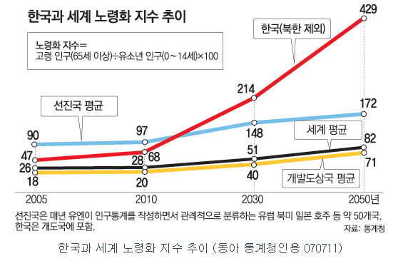 계속해서 노령화가 진행되고, 진행 속도도 남다른 한국인만큼