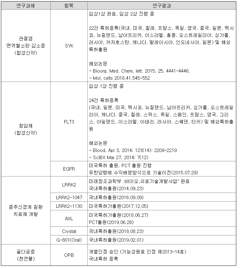 합 20억원 규모의 폐암 및 간암치료제 후보물질 기술이전을 통해 활발한 연구활동을 보여주고 있습니다