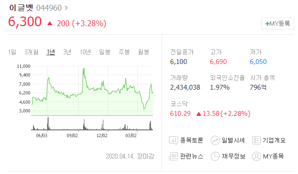 단지 아프리카돼지열병 관련주 검색 후 급하게 이글벳이라는 종목을 매수하기보단, 기업에 대해 대략적으로라도 알고 투자하는게 좋다는 생각에 분석해보았습니다. 중장기적으로 보기에는 무리가 있을수 있으나, 관련 테마때 급등하는만큼 많은 분들이 좋고 나쁜 추억 가지고 있는 종목이라 생각합니다.