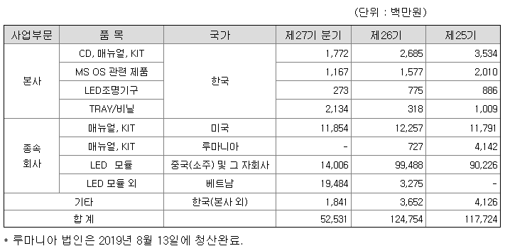 위 표를 통해 제이엠아이의 매출실적을 확인할 수 있습니다