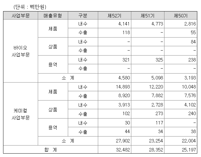 파미셀의 매출액을 보시면 꾸준한 증가세임을 볼 수 있습니다. 특히 바이오 사업부문에서의 성장세도 눈에 띄지만, 케미컬 사업부문이 꾸준한 성장세를 이루어내고 있다는점이 긍정적입니다.
