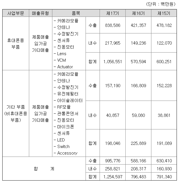 파트론 / LG이노텍 / 덕우전자 / 엠씨넥스 / 캠시스 / 인터플렉스 / 하이비젼시스템