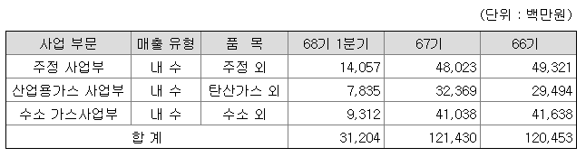 주정사업부의 비중이 높은 상태이고, 향후 그린뉴딜의 수혜주로 수소에 대한 관심이 높아지면서 타 사업부문도 높은 성장률을 기록할 것으로 보입니다.