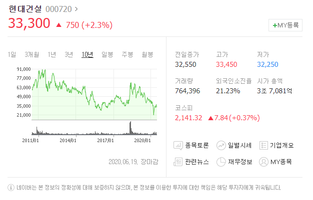 네이버증권 현대건설