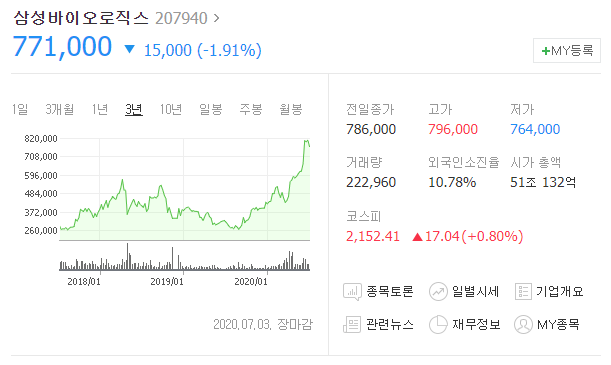 삼성바이오로직스의 주가는 엄청난 성장세를 보여왔습니다. 정치, 탈세 관련 이야기도 있지만 어찌되었건 바이오 기업중 대장중의 대장 역할을 하는 모습을 보여주었습니다.