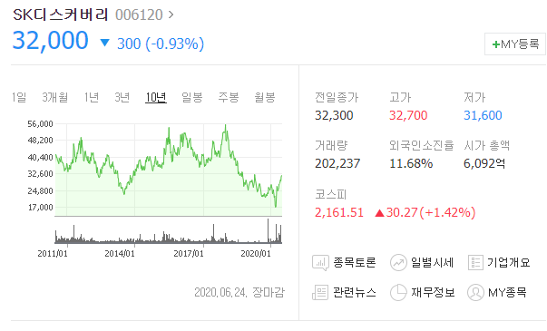 네이버증권 SK디스커버리