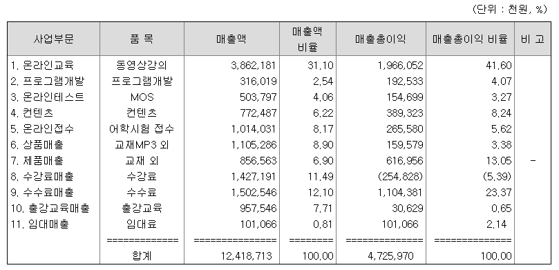 하지만 동영상강의 뿐만 아니라 관련 파생 사업부문에서 다양한 방식으로 매출이 발생하고 있다는 점이 긍정적으로 보입니다.