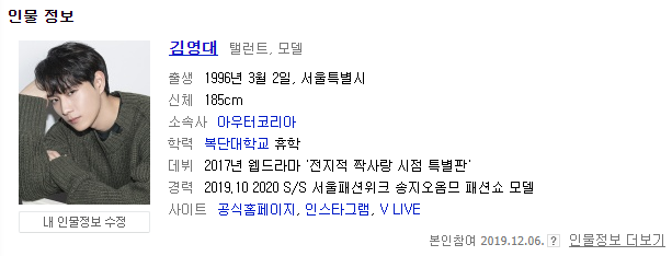 강동원과 닮은 비쥬얼을 보여주는 김영대에 대해 알아봅시다