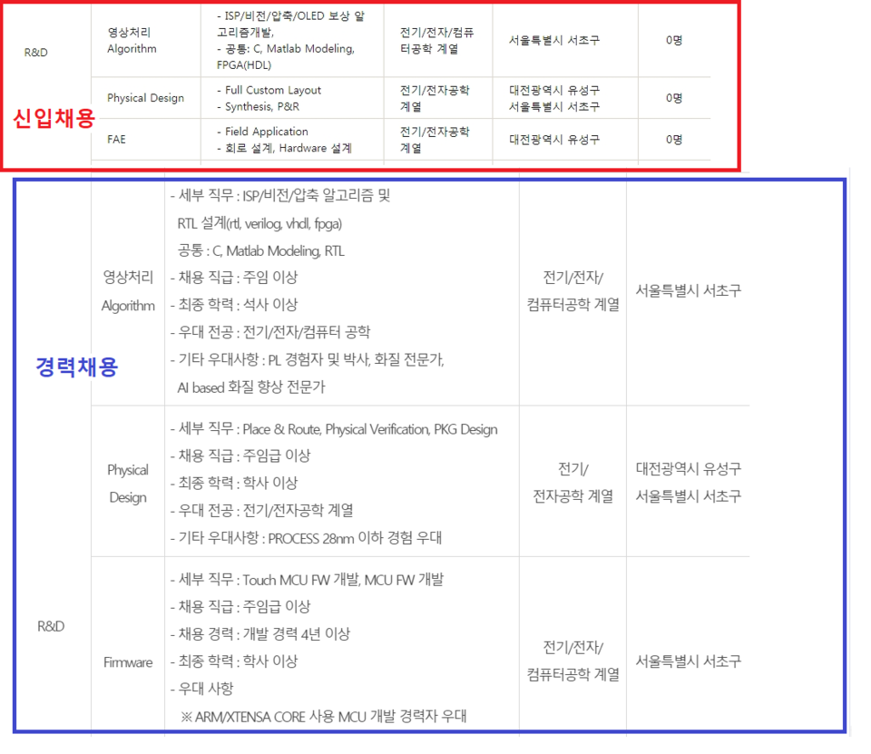 위 사진을 보시면 빨간색이 19년도 신입사원 채용공고이고 파란색이 18년도 하반기 경력사원 채용공고입니다