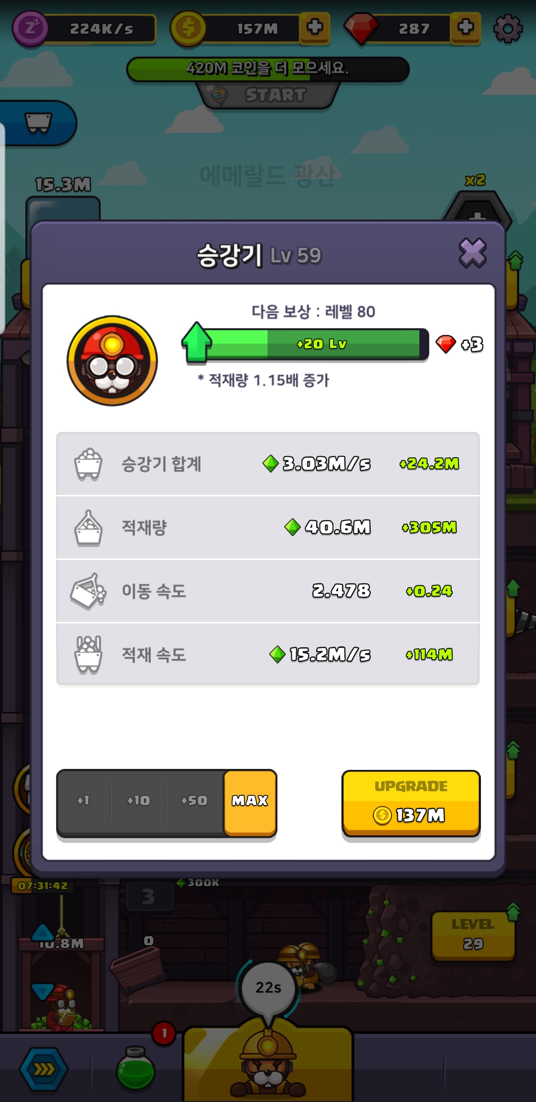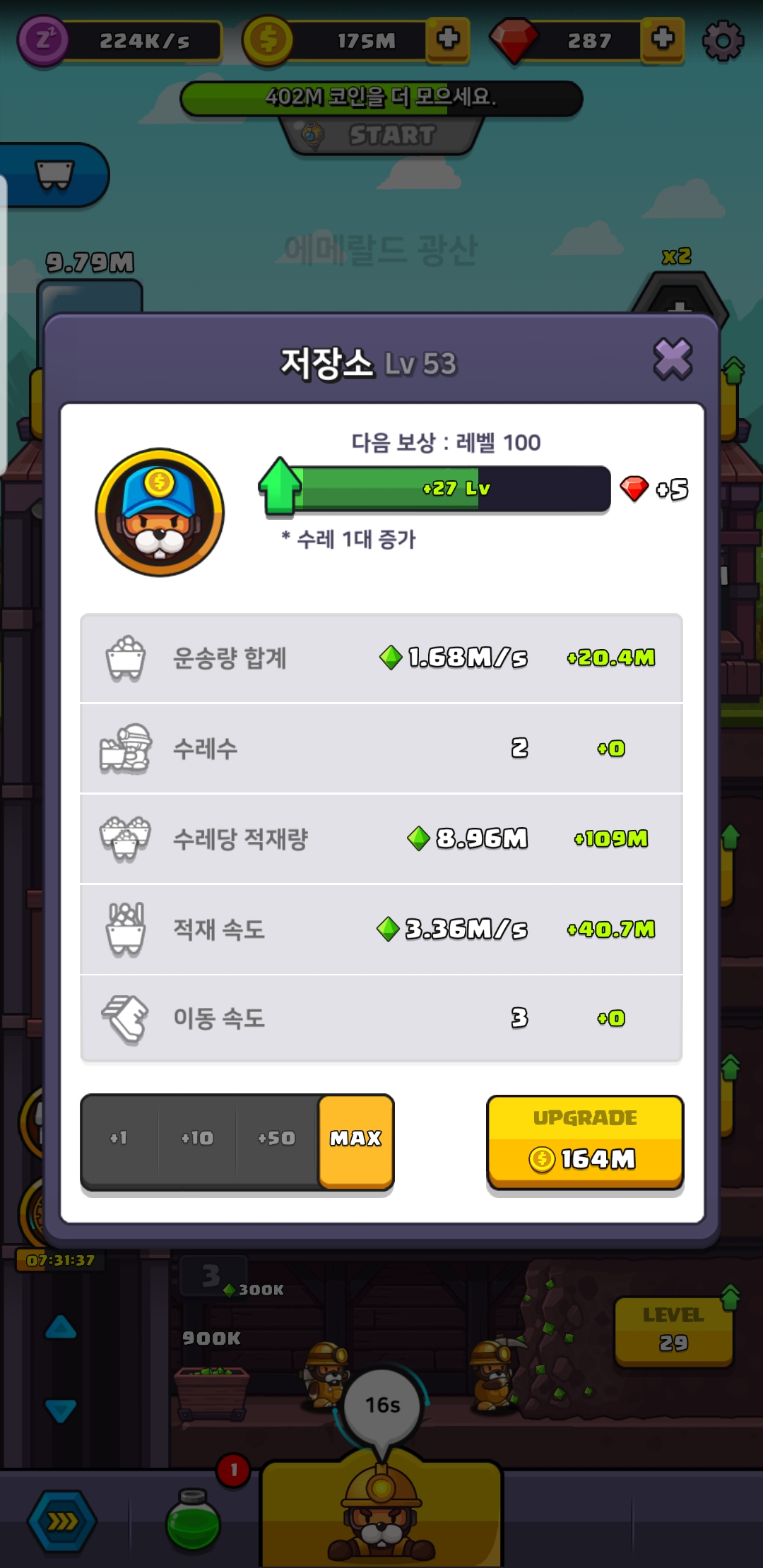 빠른 성장과 빠른 채굴이 이 게임의 최대 장점인 것 같아요
