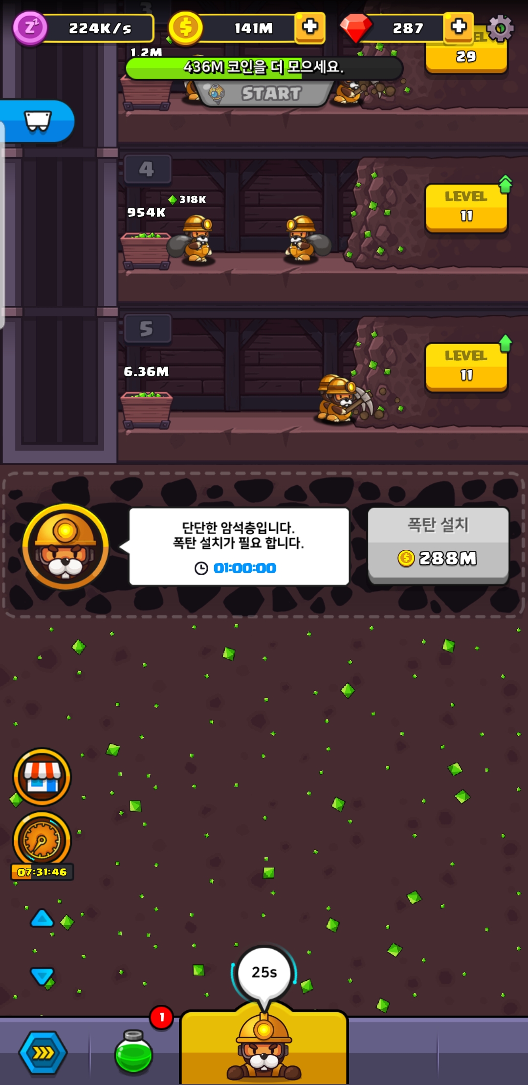 5개의 땅굴을 판 뒤로는 1시간 기다려야하네요...