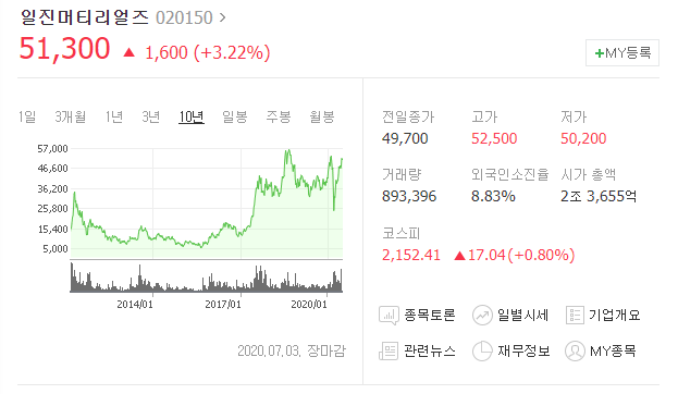 [필독] 일진머티리얼즈 분석. 전기차 배터리 관련주.