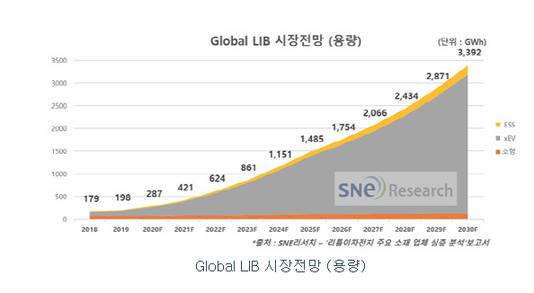 글로벌 배터리 시장은 위 사진과 같이 엄청난 성장세를 기록할 것으로 전망됩니다. 지금의 수요는 아무것도 아니라는듯이 미래에는 엄청난 양의 수요가 요구될 것입니다.