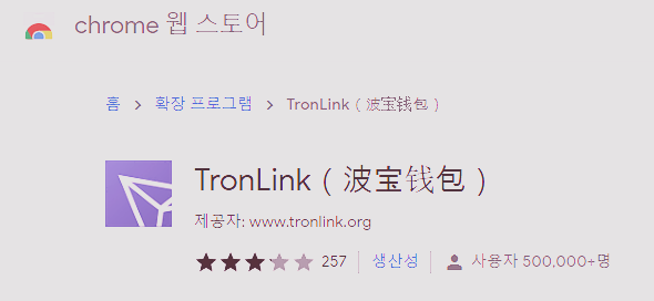 크롬 확장프로그램에 중국어가 적혀 있어서 살짝 거부감이 들긴 했으나, Justin Sun에 의해 중국에서 개발된 코인이기에 받아들이고 넘어갔습니다. 메타마스크에서 트론 체인을 추가할 수 없는 관계로 TronLink를 다운받아서 트론 네트워크를 사용해야 합니다.