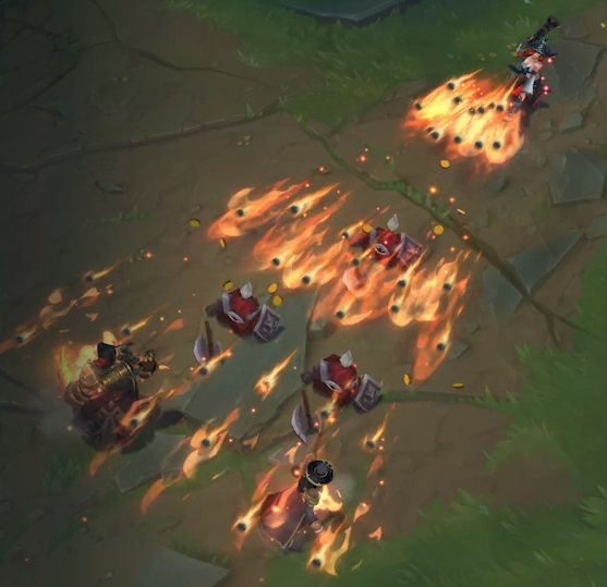 Q스킬인 한 발에 두놈은 뒤 상대까지 퍼져나가는 강력한 콩알탄입니다