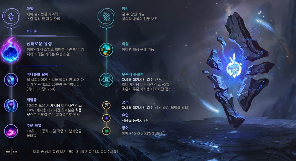 니달리 룬의 핵심은 유성 쿨타임 감소입니다
